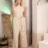 Krem Yırtmaç Kol Bağlamalı Rapsody Tulum