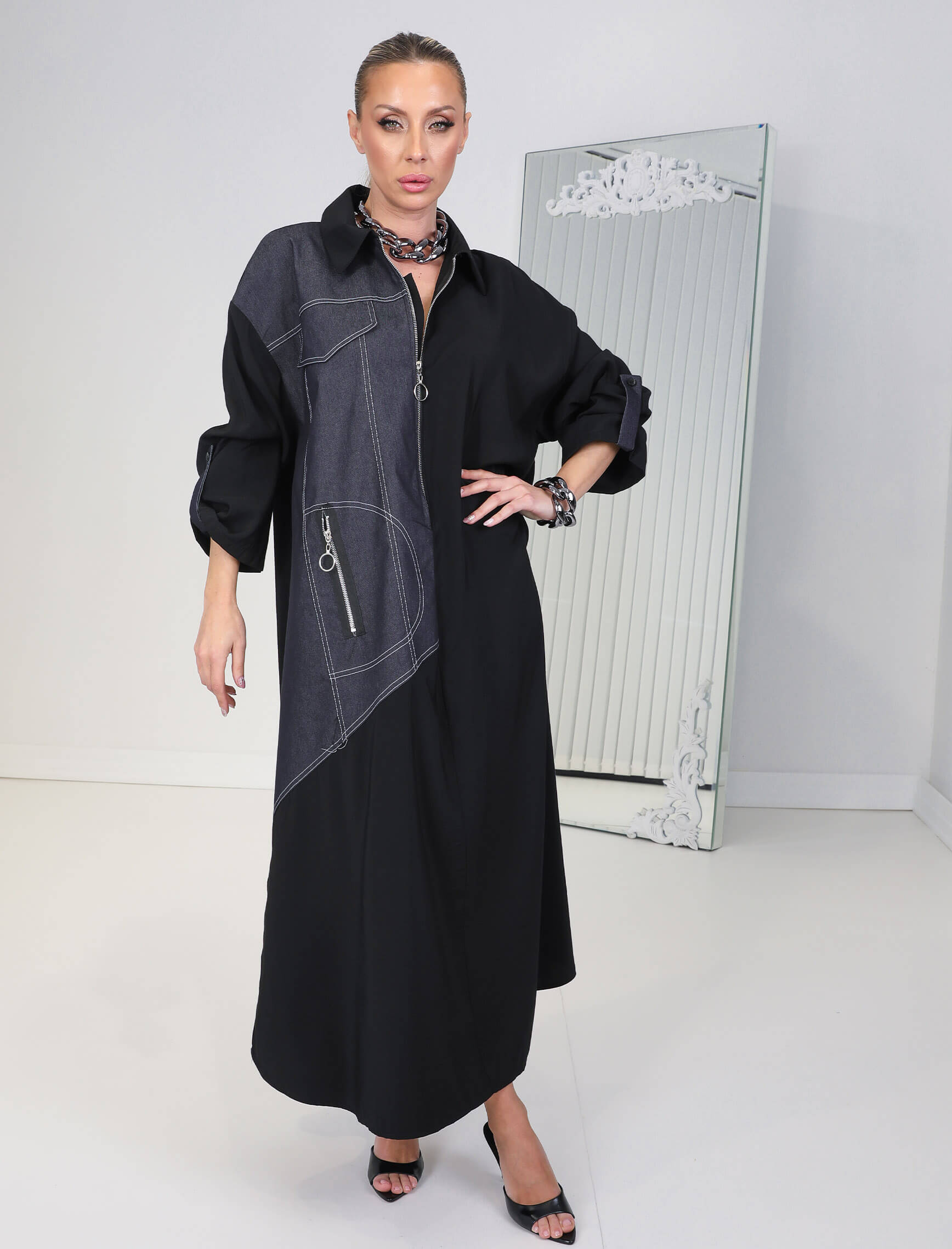 • Siyah Kot Garni Joya Elbise