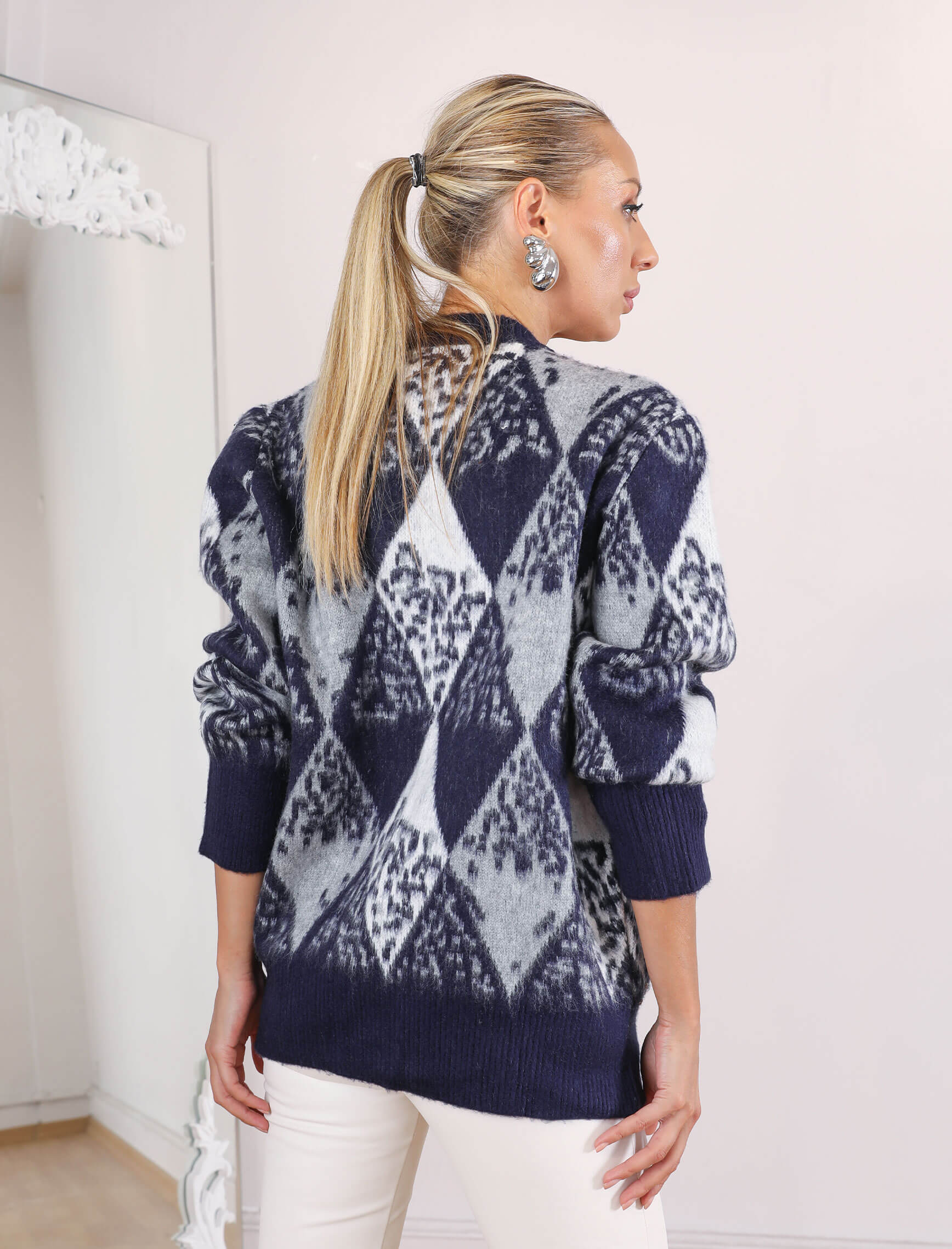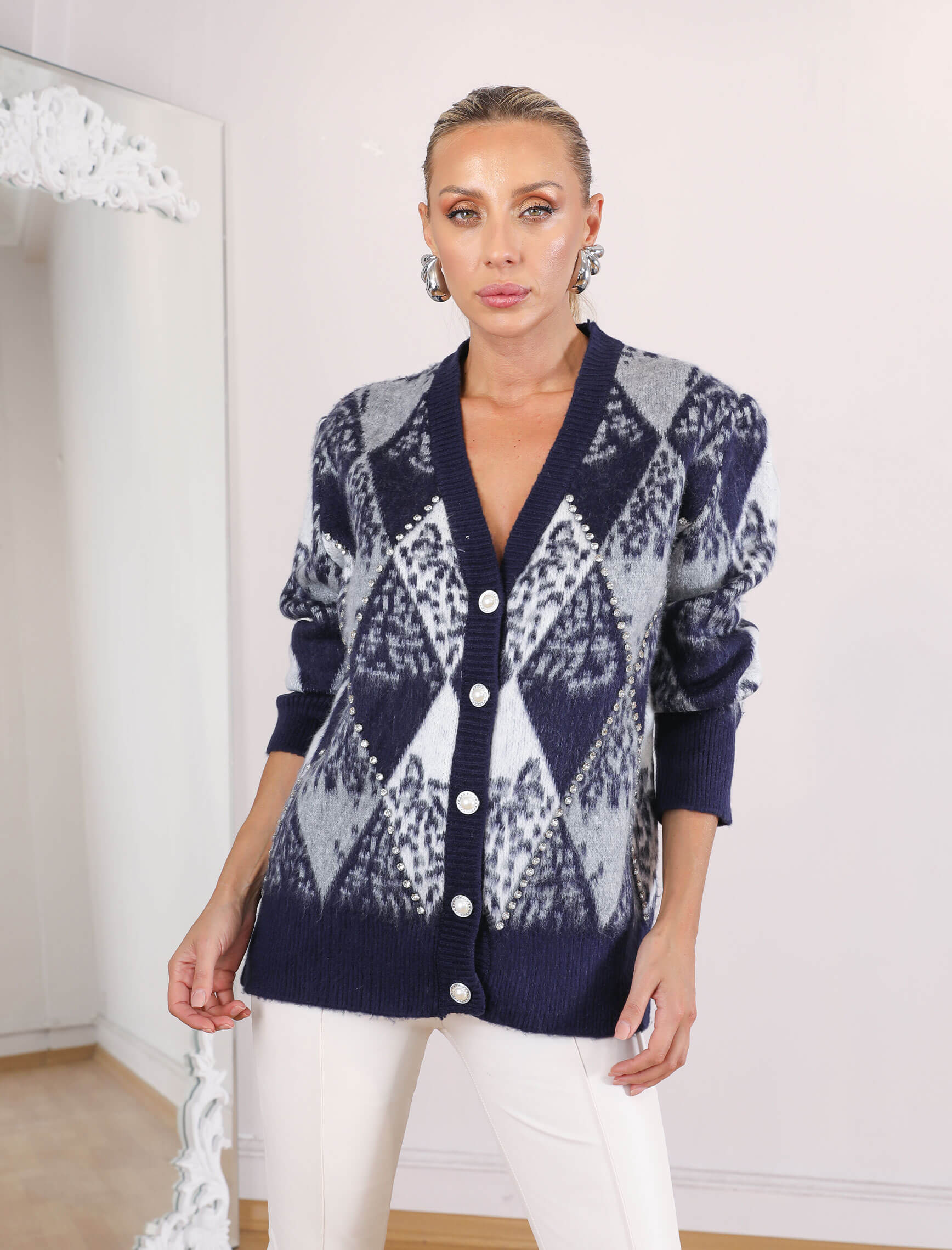 Lacivert Baklava Taşlı Hırka