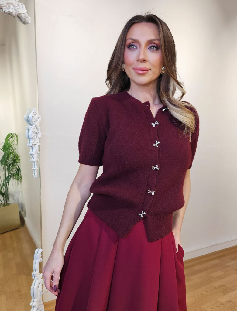 Bordo Gümüş Fiyonk Düğme Hırka – OUTLET