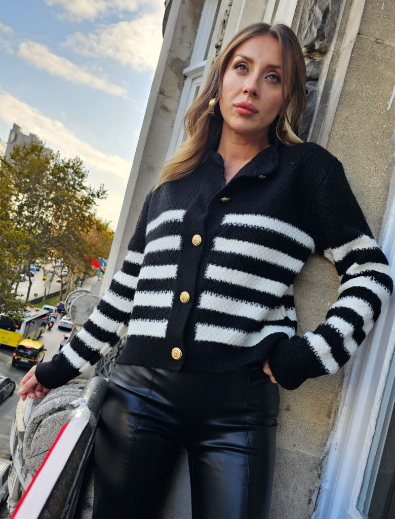 579,95 TL300,00 TL-48% İNDİRİM Bu ürünün birden fazla varyasyonu var. Seçenekler ürün sayfasından seçilebilirSiyah Çizgili Dantelli Hırka – OUTLET