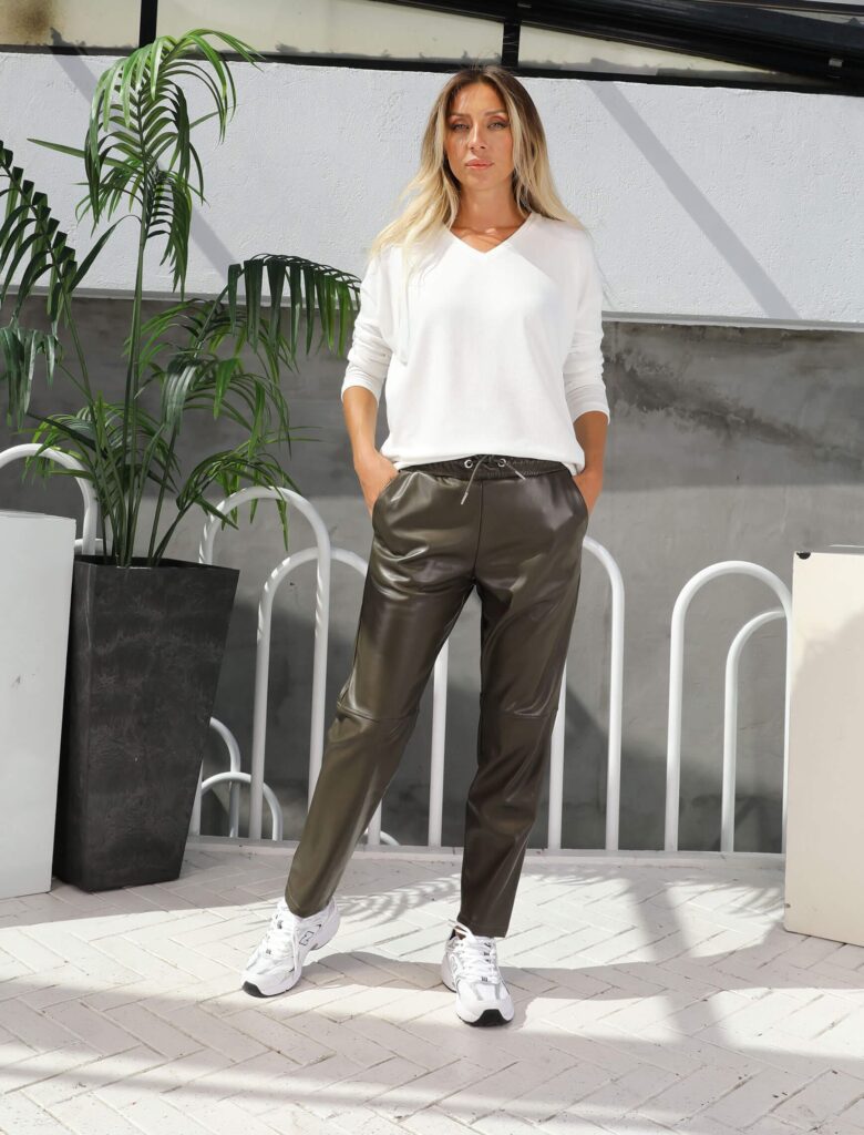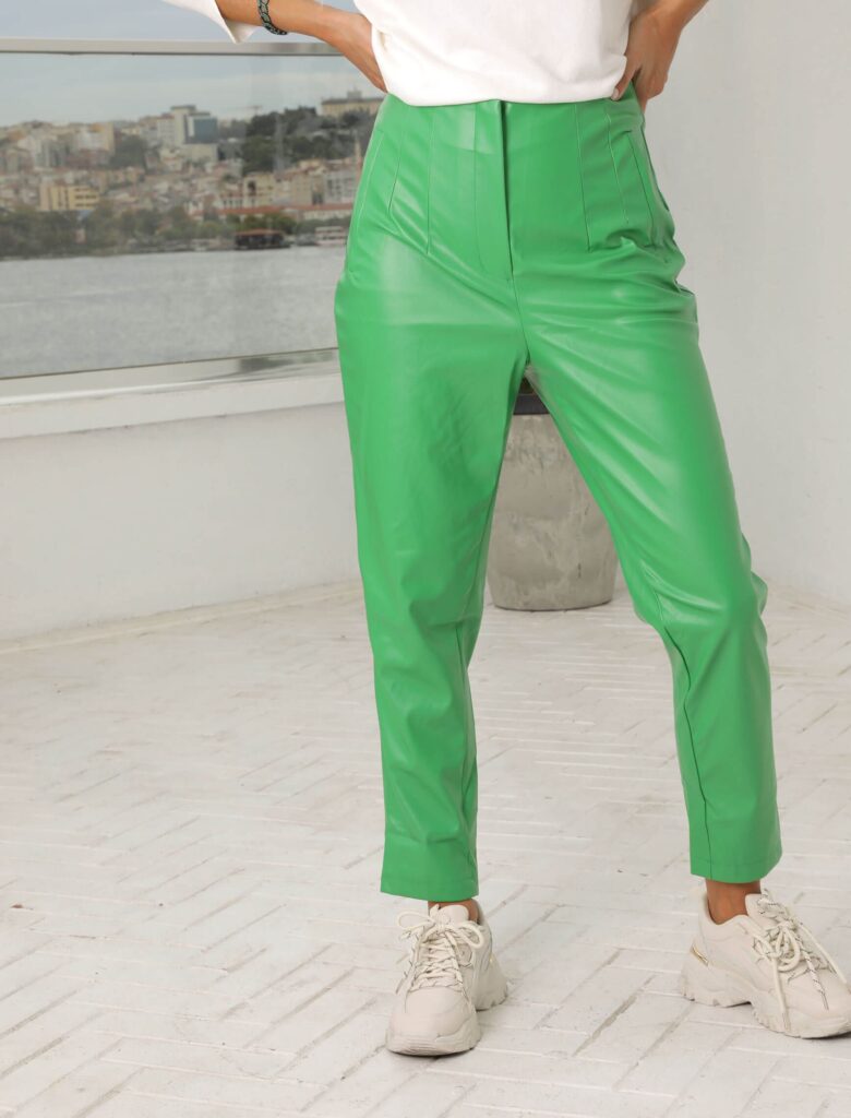 Yeşil Palazzo Deri Pantolon- OUTLET