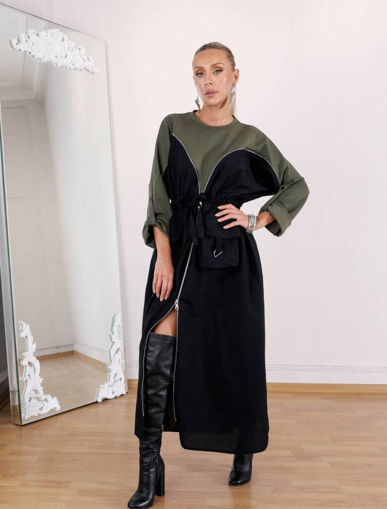 1.299,95 TL1.100,00 TL-15% İNDİRİM Bu ürünün birden fazla varyasyonu var. Seçenekler ürün sayfasından seçilebilirHaki Monja Fermuar Elbise – OUTLET