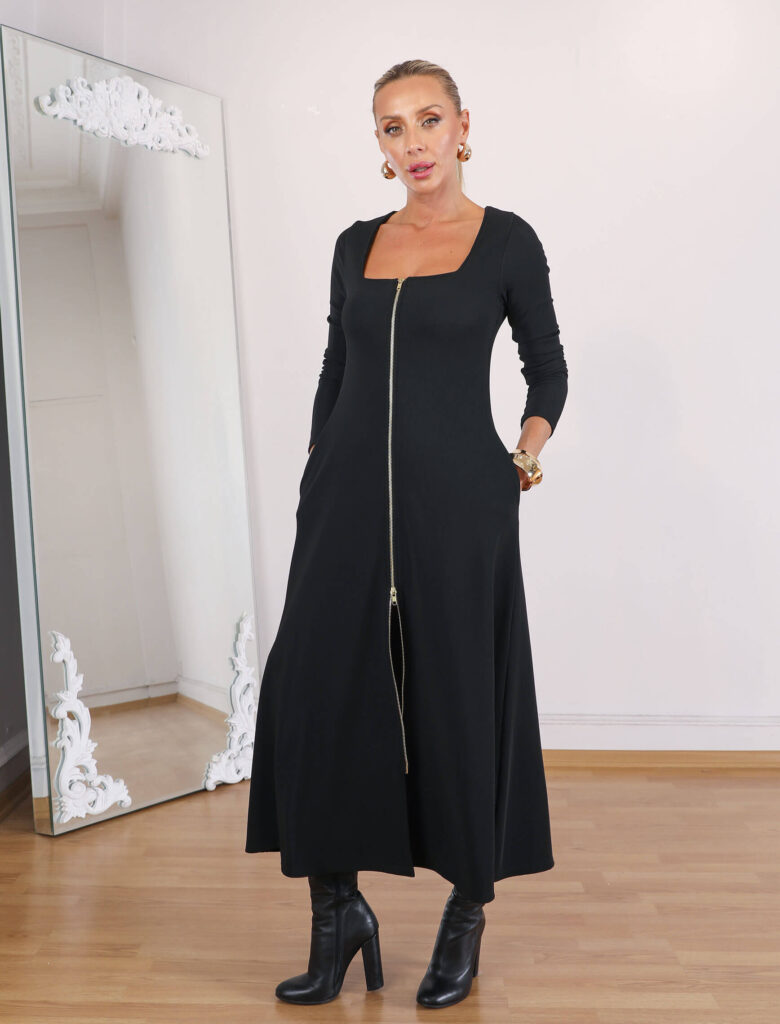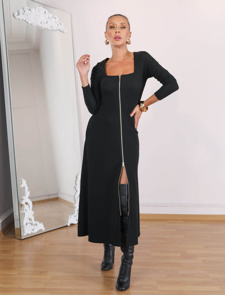 Siyah Melisa Fermuarlı Elbise – OUTLET