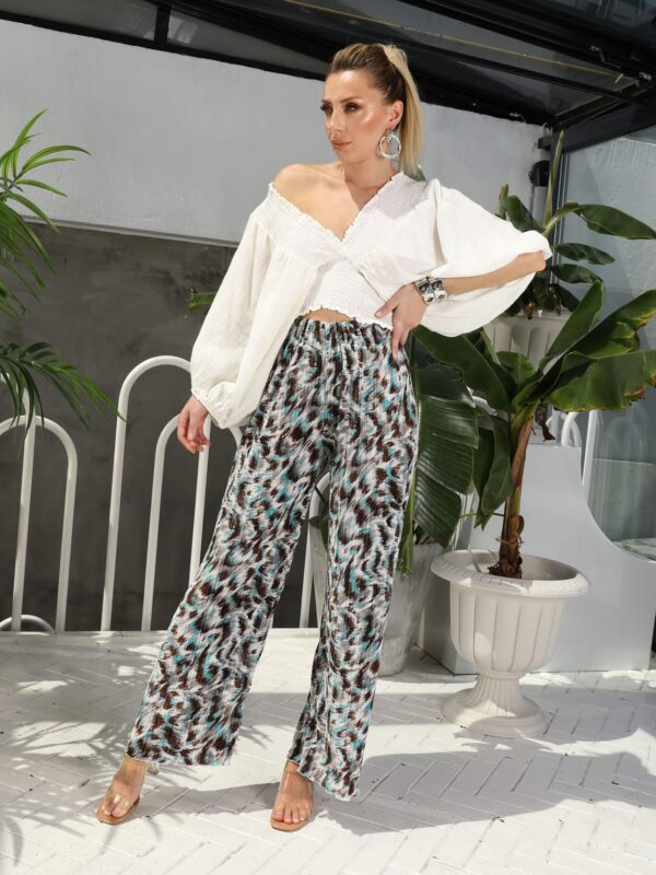 Leopar Desen Lasti̇k Bel Rahat Pantolon