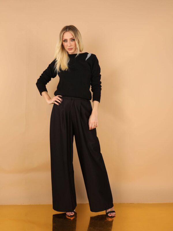 Siyah Pileli Bol Paça Palazzo Pantolon