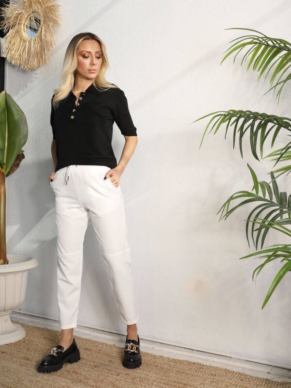 Siyah Yan Gümüş İşleme Çelik Krep Pantolon