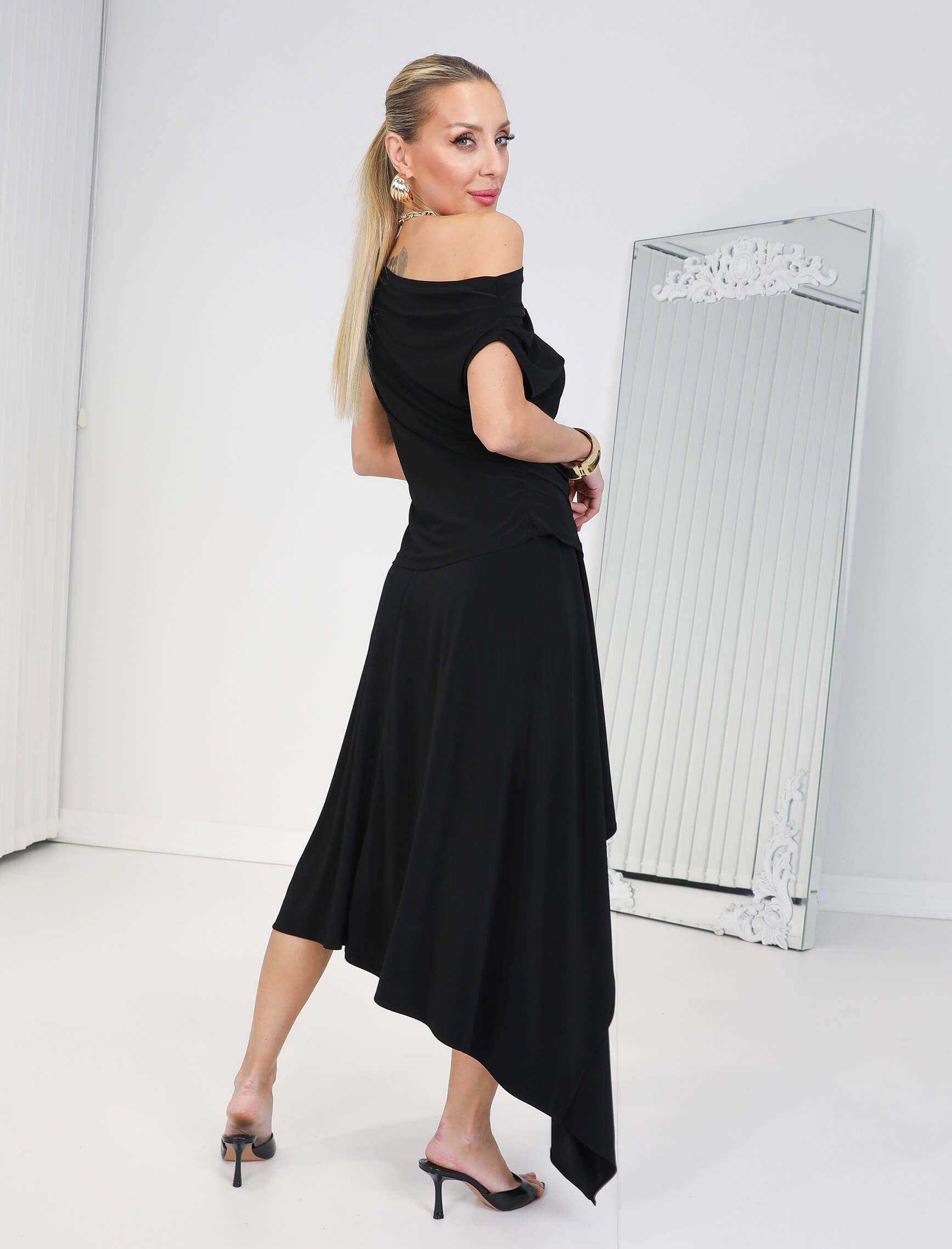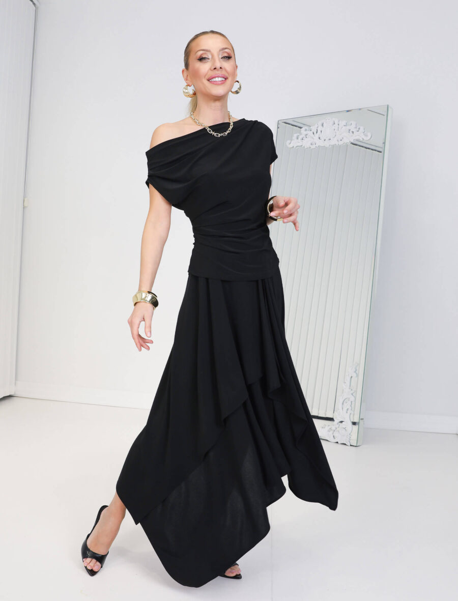 Siyah Asimetrik Etekli Volare Takım