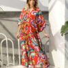 • Ekru Saksrengi Nakış Gömlek Elbise