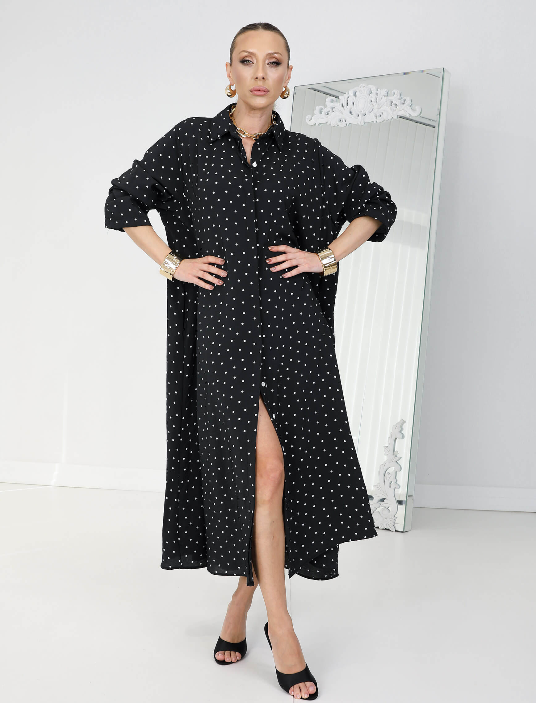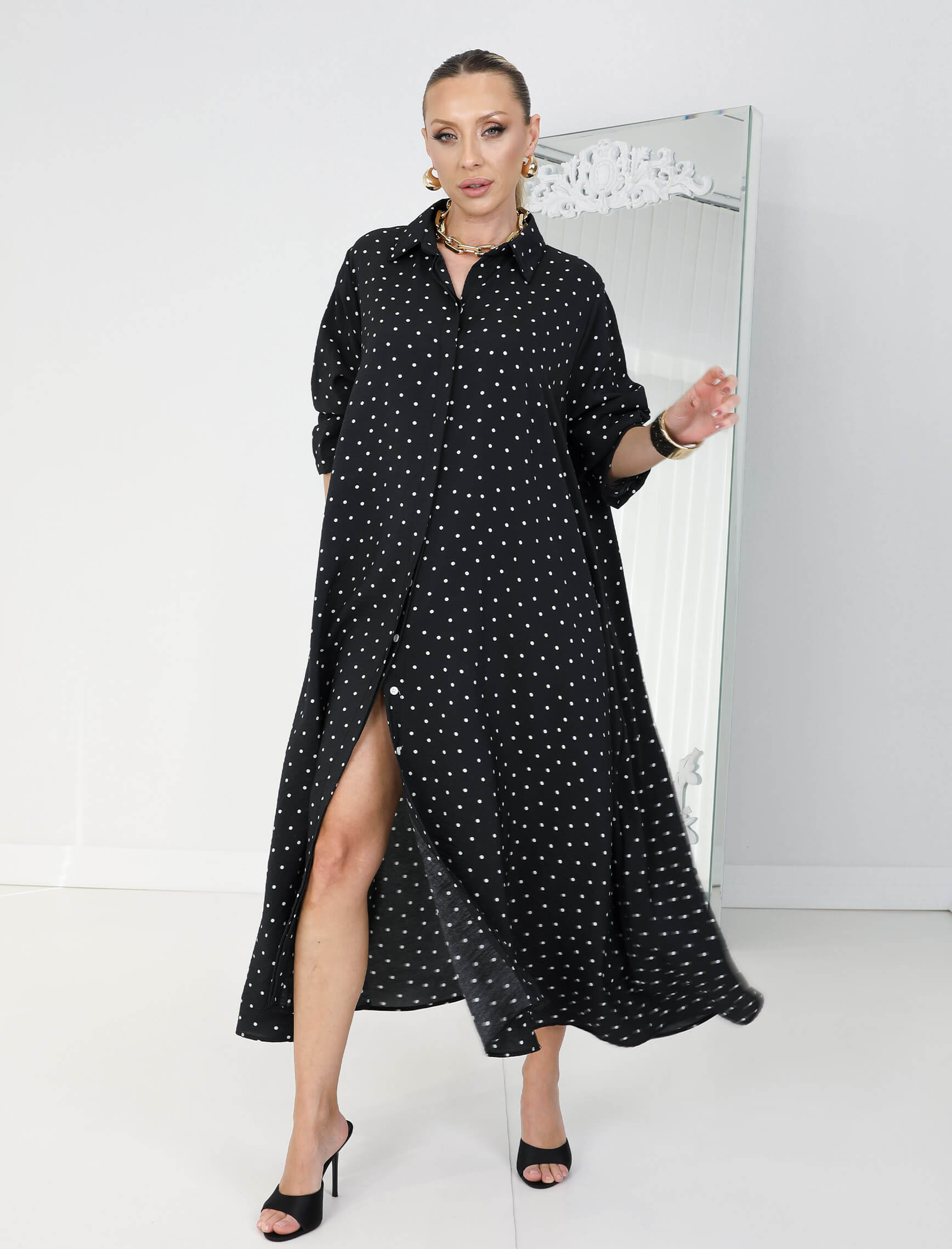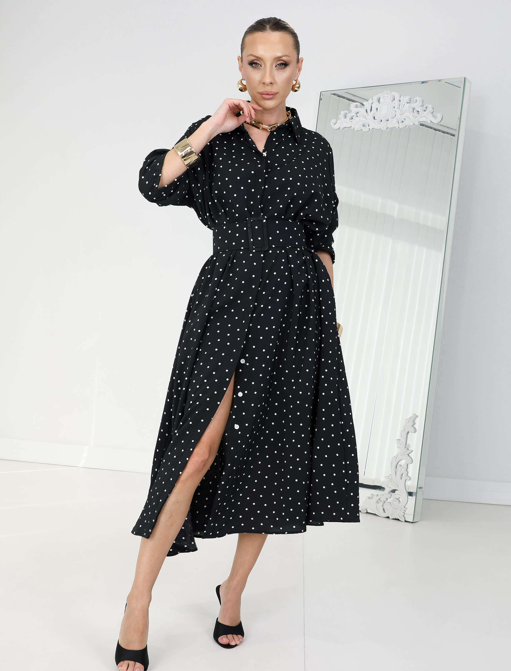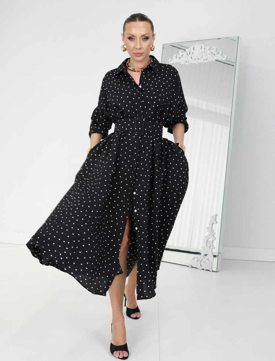 Siyah Beyaz Puantiye Rosso Elbise