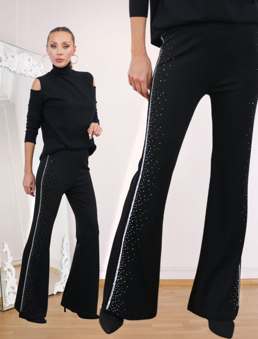 • Siyah Yan Siyah Taşlı Sparkle Strech Pantolon
