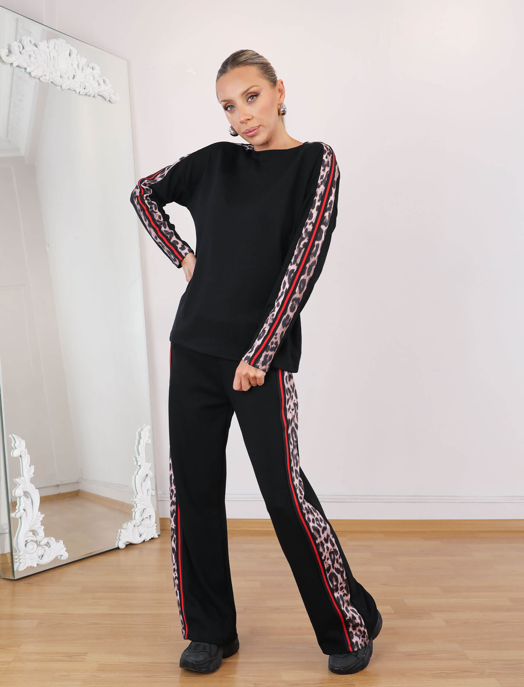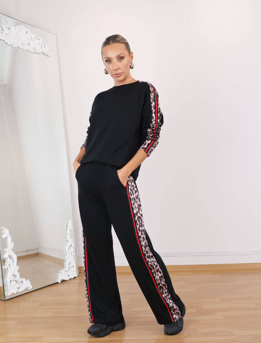 Siyah Leopardesen Kırmızı Şerit Takım