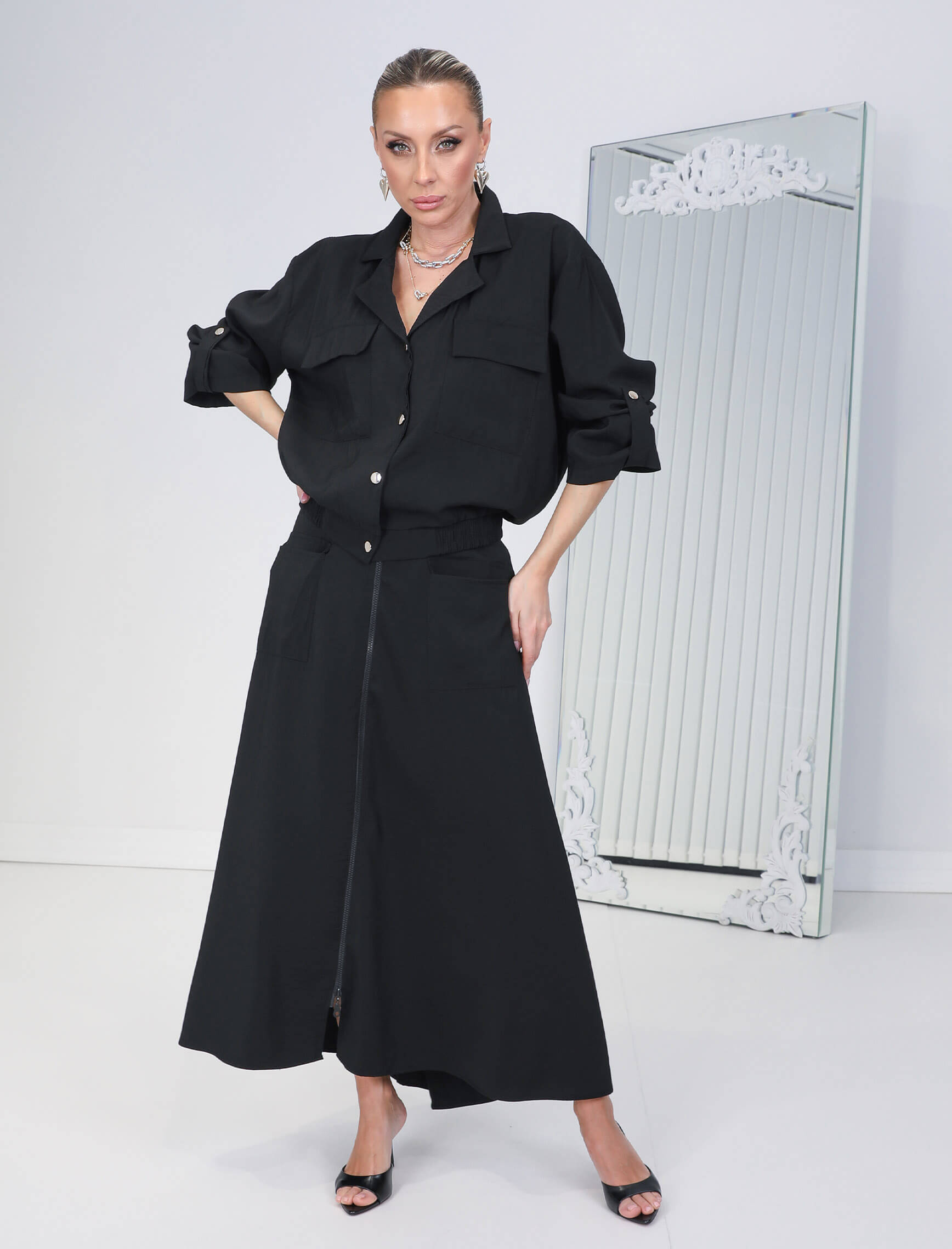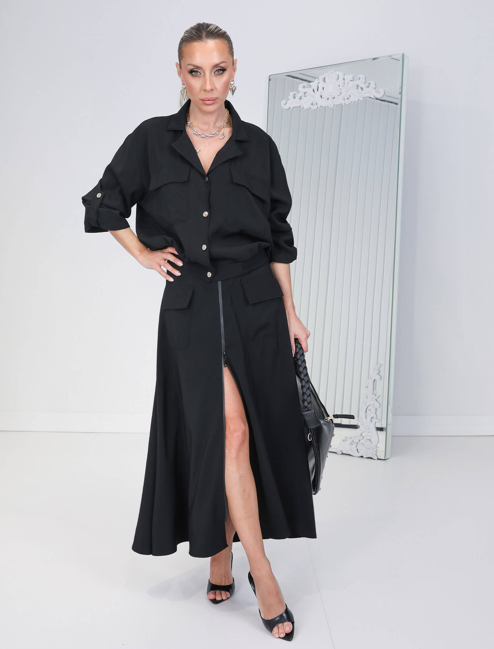 Siyah Minera Ceket Etek Takım