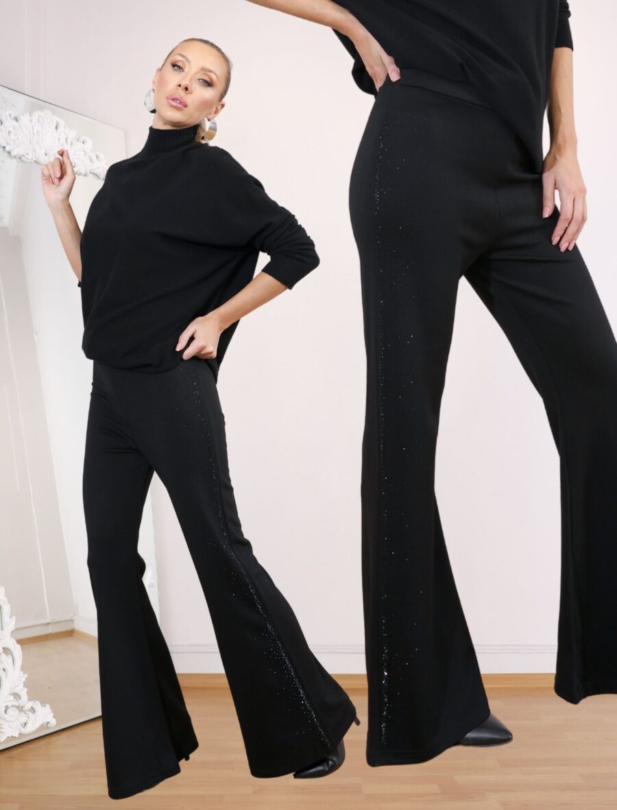 Siyah Siyah Taşlı Sparkle Strech Pantolon