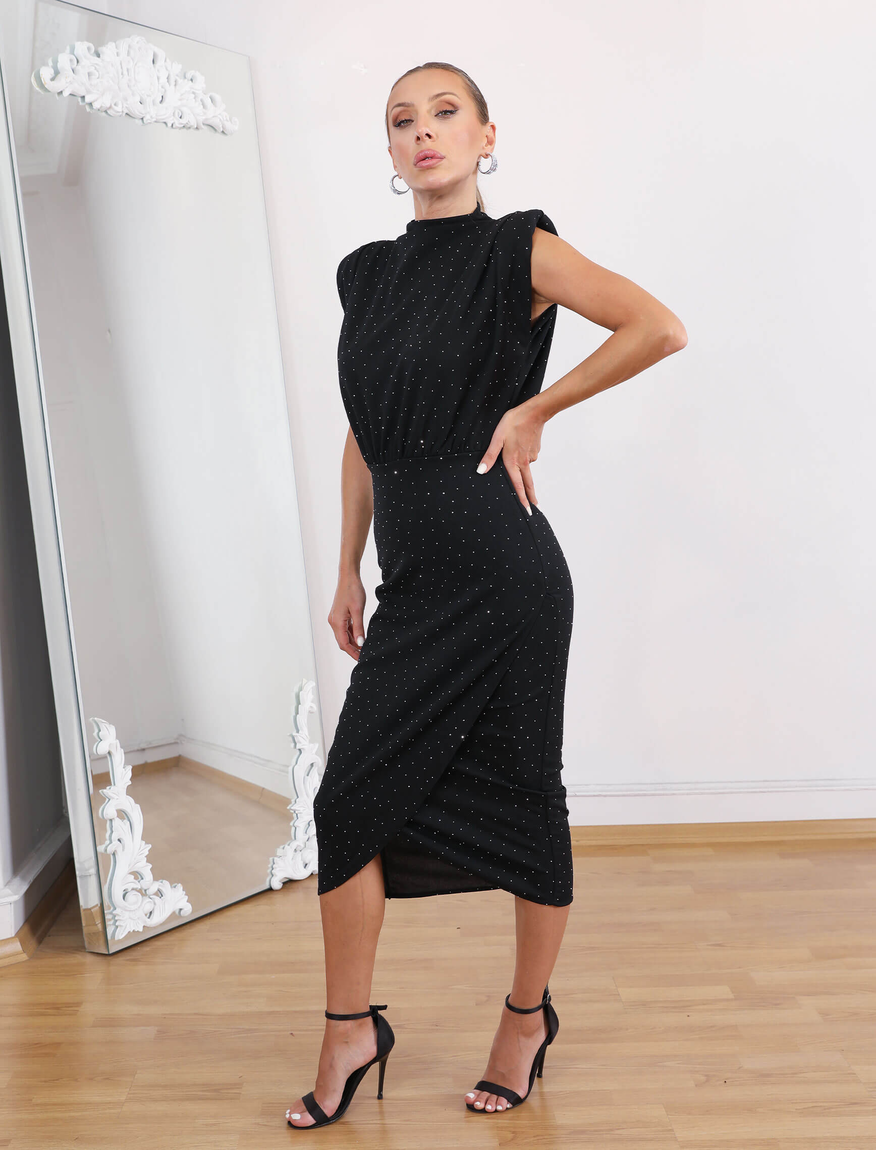 Siyah Taşlı Kolsuz Elbise