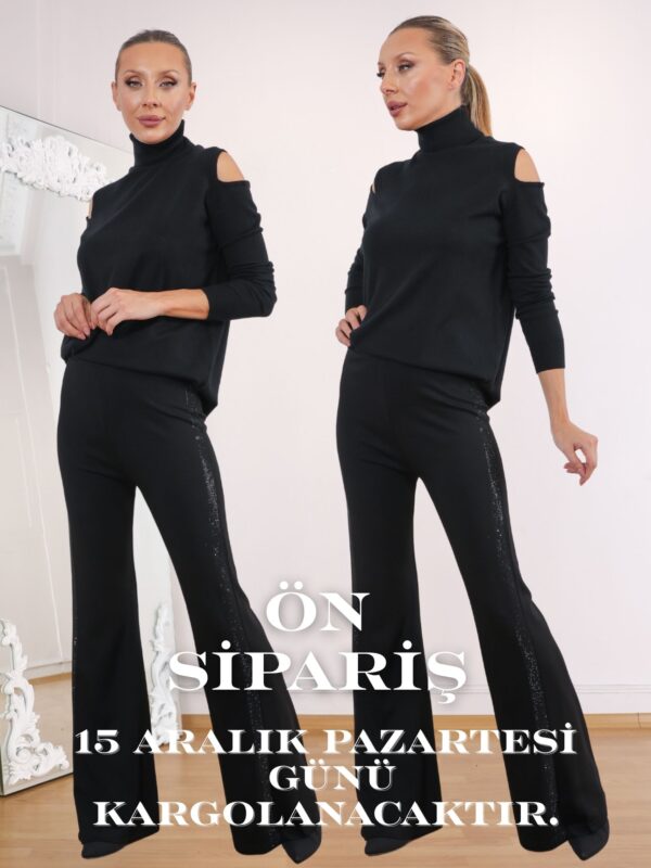 • Siyah Yan Siyah Taşlı Sparkle Strech Pantolon