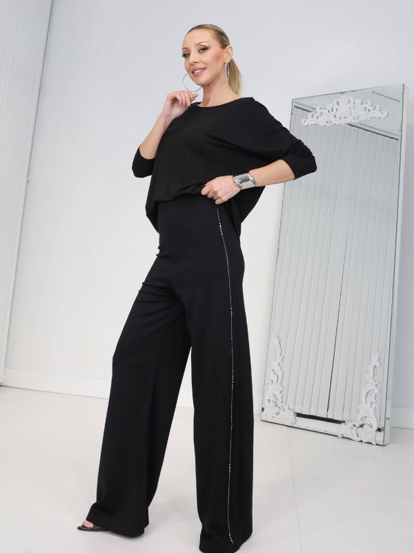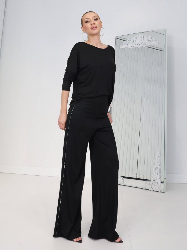 Siyah Taş Tek Çizgi Bohem Palazzo Pantolon