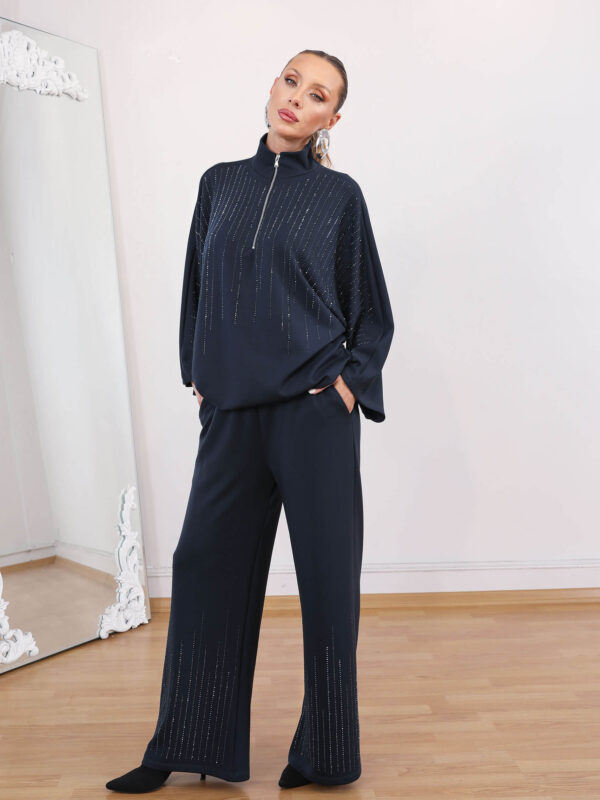 Gece Mavisi Taşlı Glamore Takım