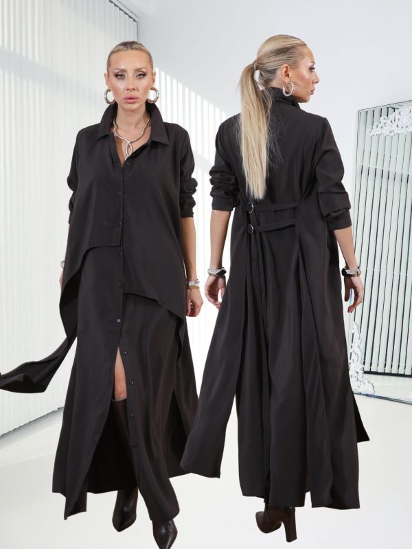 • Koyu Kahverengi Vestido Gömlek Elbise