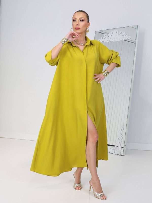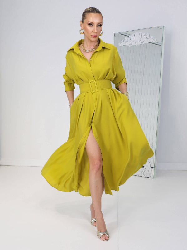 • Yağyeşili Kemerli Rosso Elbise
