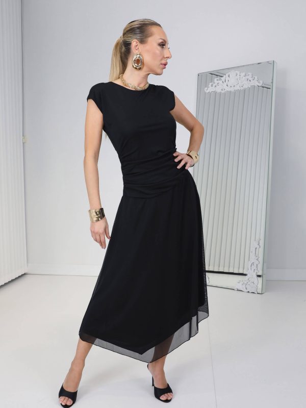• Siyah Çıtçıt Kısa Kol Alora Elbise