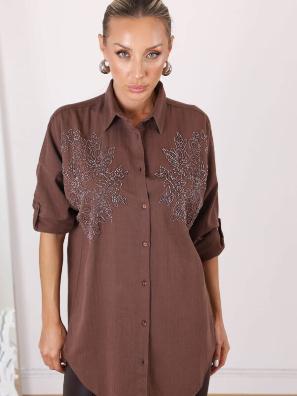 • Saksrengi Kum Boncuk İşeleme Gömlek