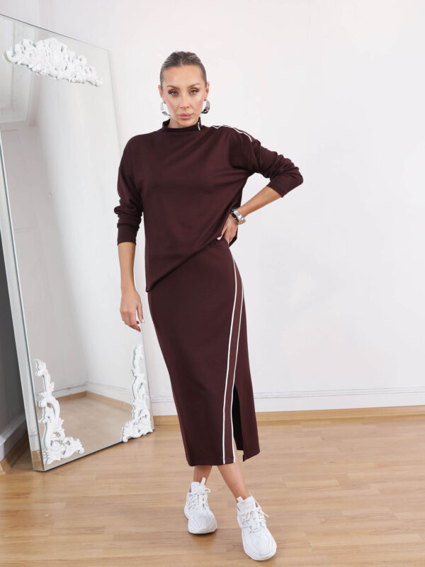 • Kahve Leopardesen Beyaz Şerit Takım