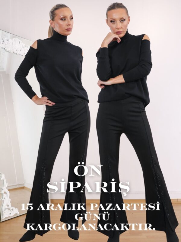 • Siyah Ön Taş Yırtmaçlı Sparkle Strech Pantolon