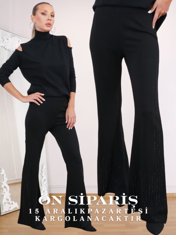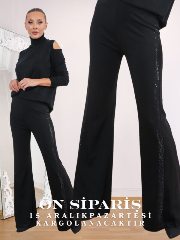 • Siyah Yan Siyah Taşlı Sparkle Strech Pantolon