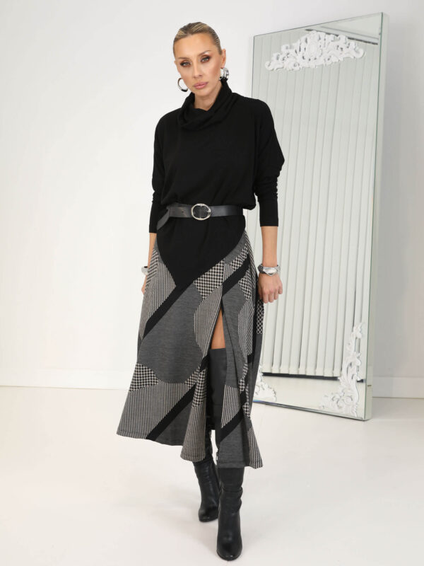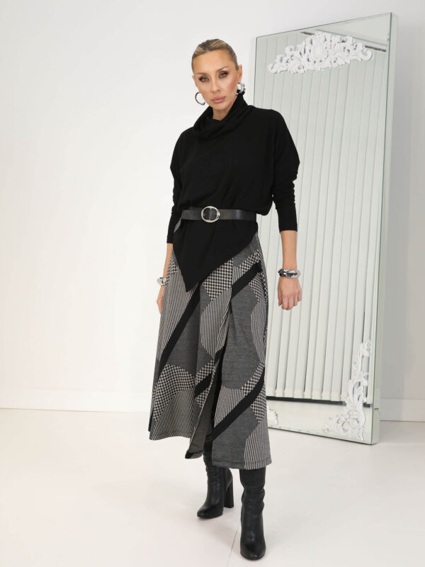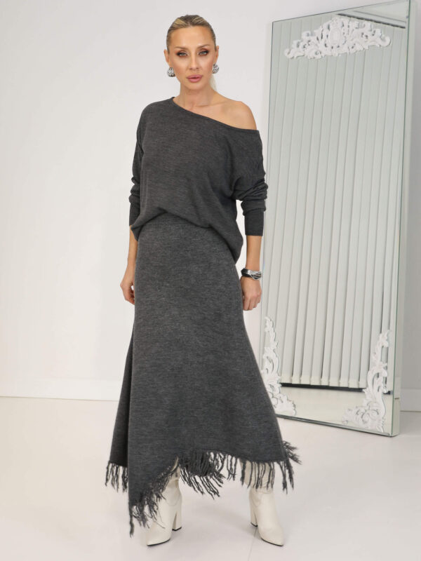 • Antrasit Asimetrik Saçaklı Triko Etek
