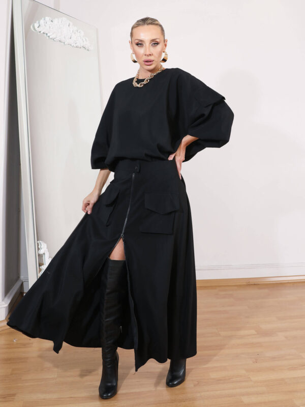 • Siyah Kuşgözü Kemerli Mona Elbise