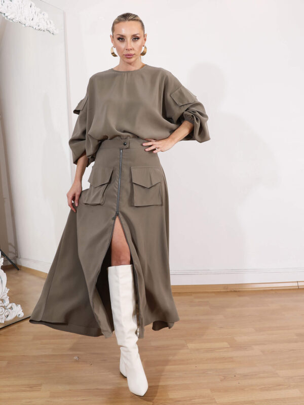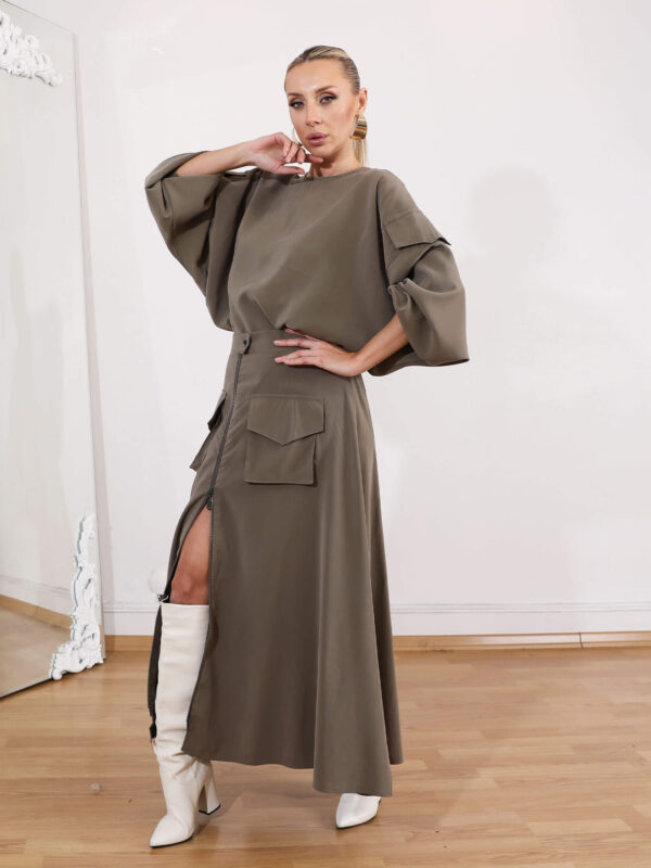 • Kahverengi Kuşgözü Kemerli Mona Elbise