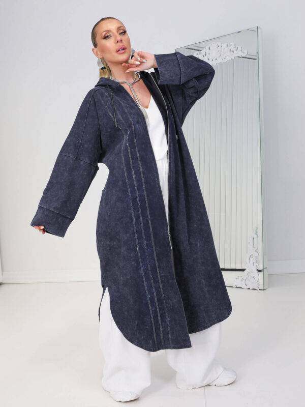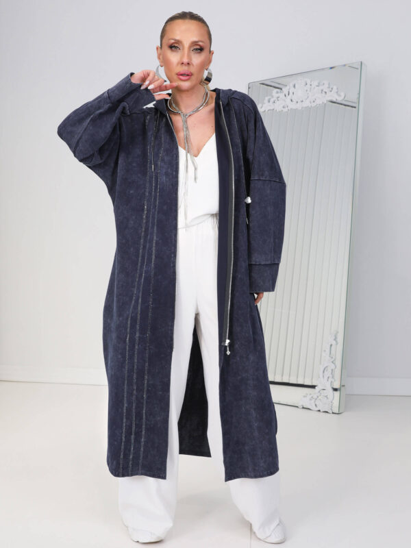 • Lacivert Yıkama Gümüş Taşlı Kap
