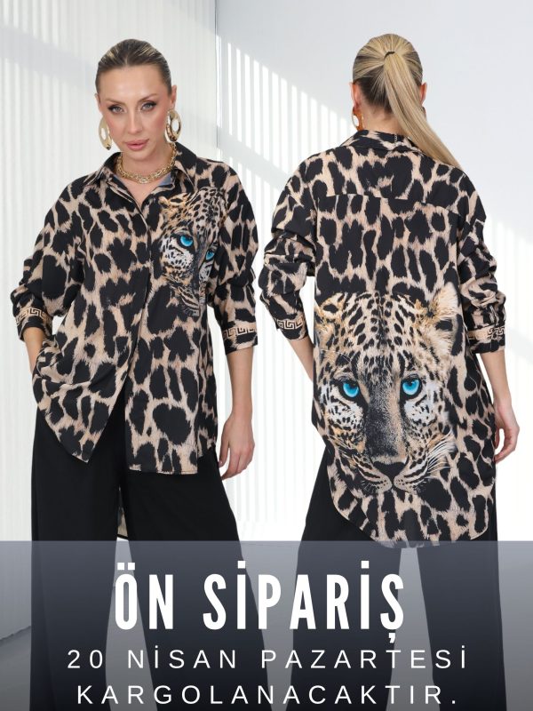 Beyaz Leopardesen Taşlı Arancia Gömlek