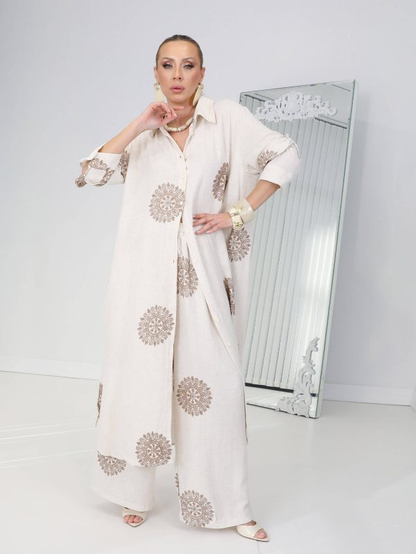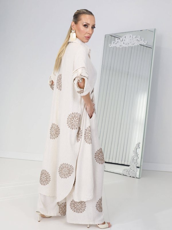 • Ekru Kahve Nakış Tunikli Sahara Takım