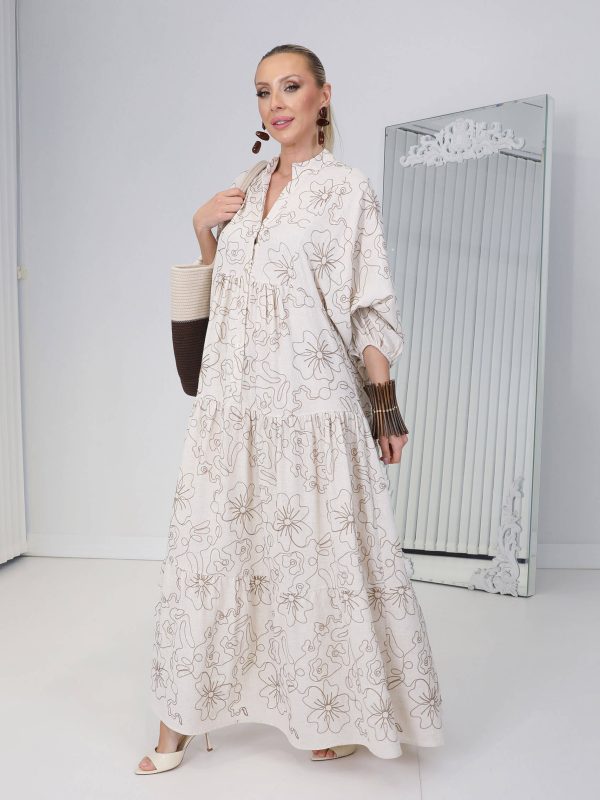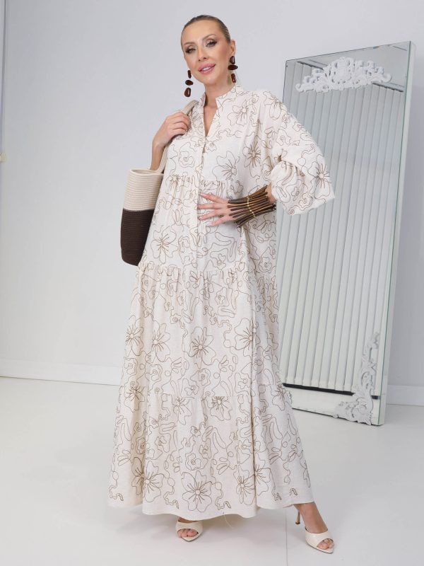 • Ekru Çiçek Nakış Sahara Elbise