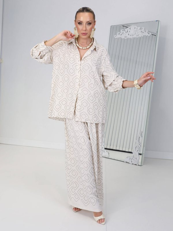 • Ekru Çizgi Nakışlı Sahara Takım