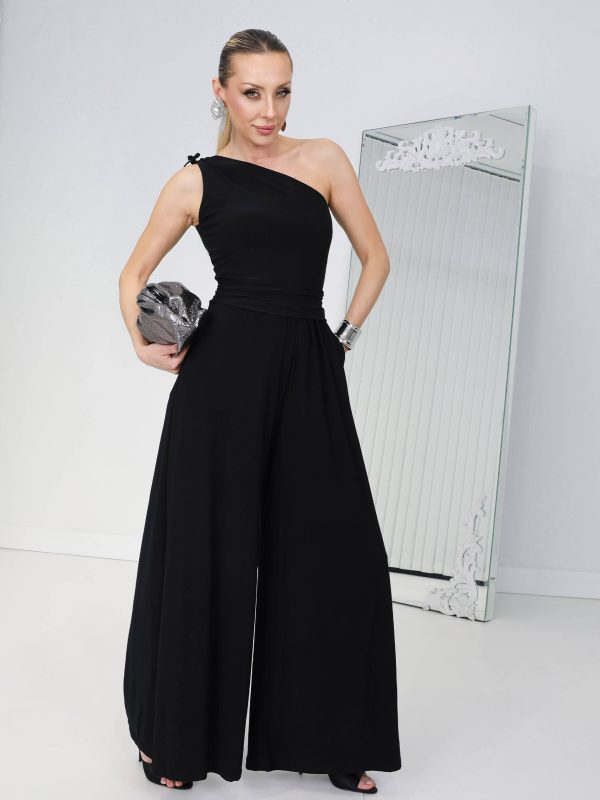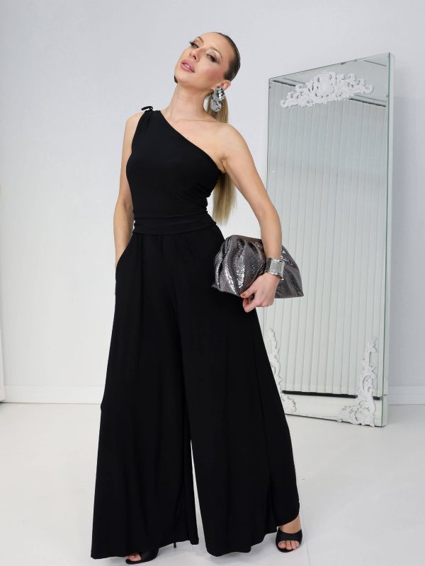 • Siyah Tek Omuz Layalı Tulum