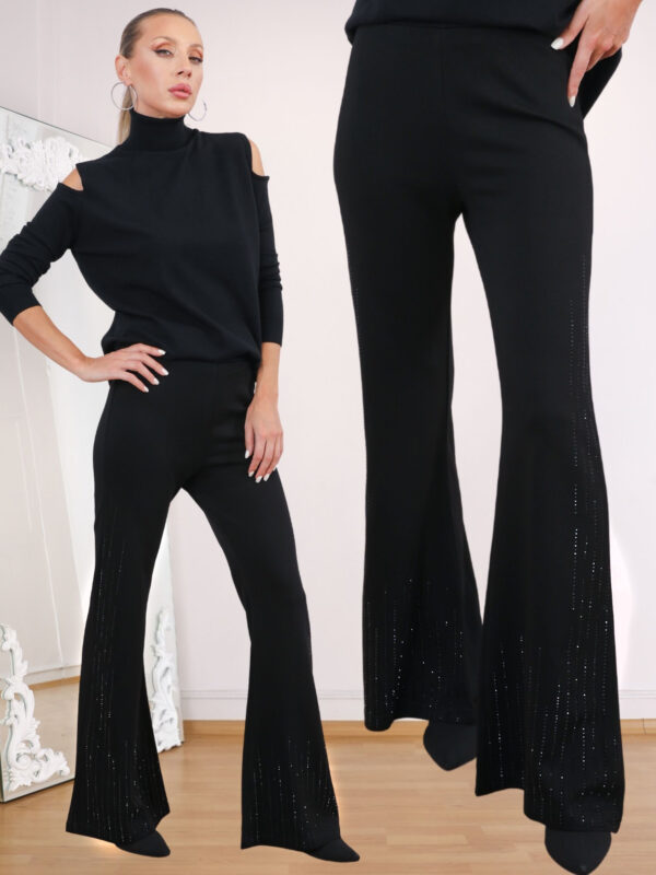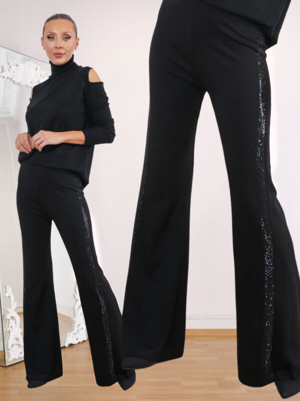 Siyah Yan Siyah Taşlı Sparkle Strech Pantolon
