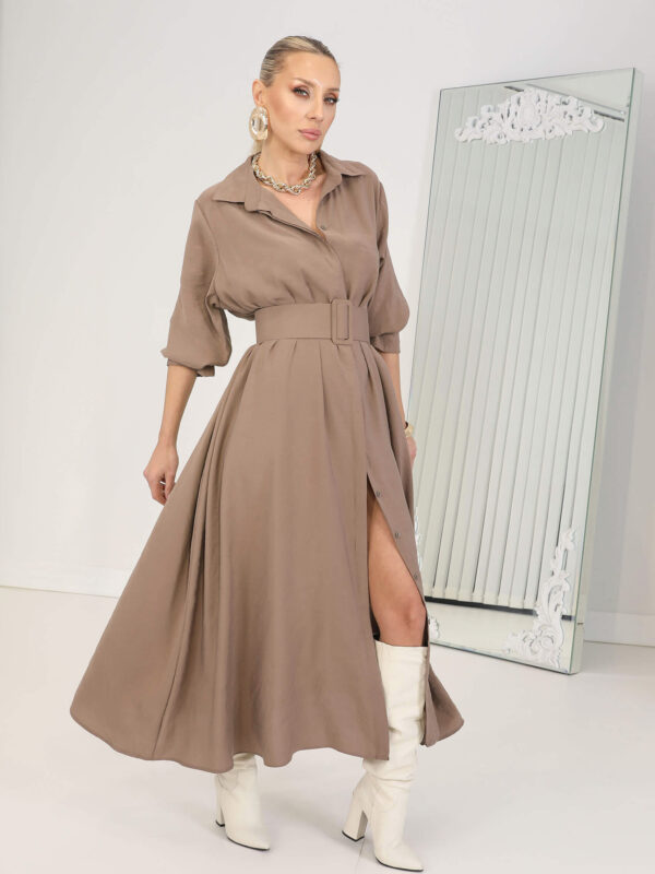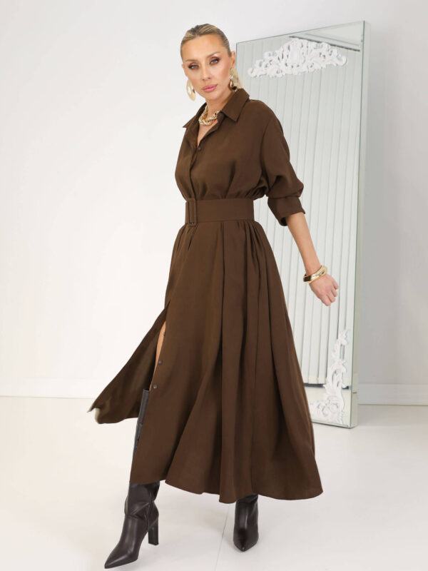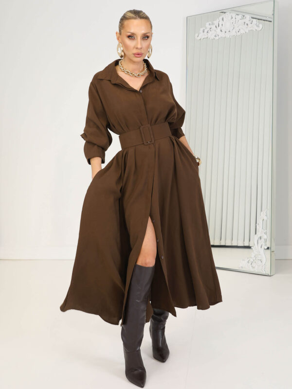 • Kahverengi Kemerli Rosso Elbise