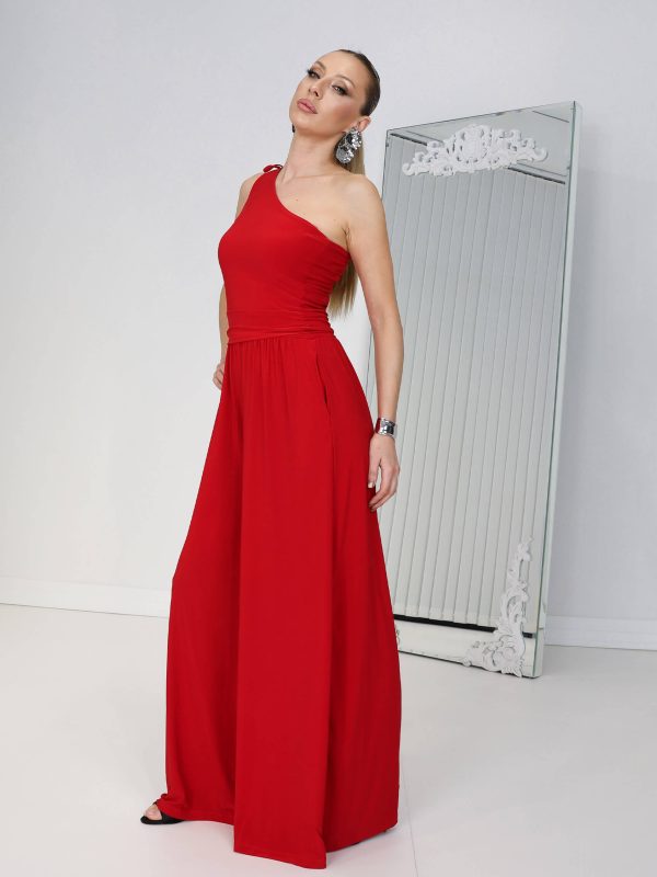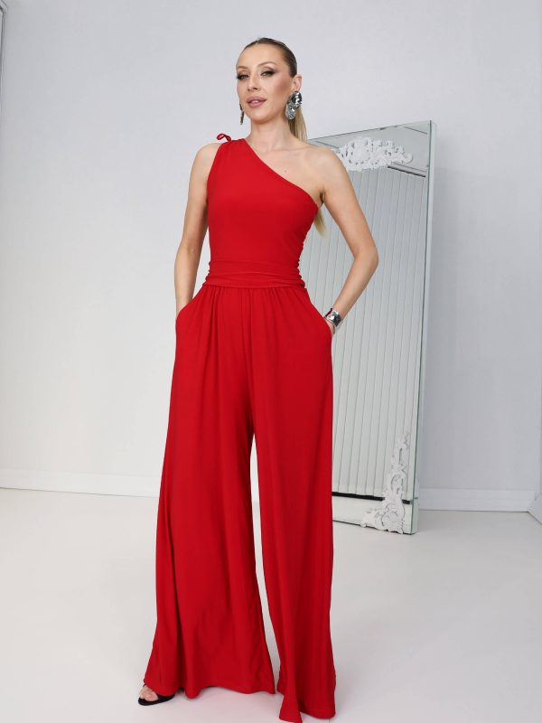 • Kırmızı Tek Omuz Layalı Tulum