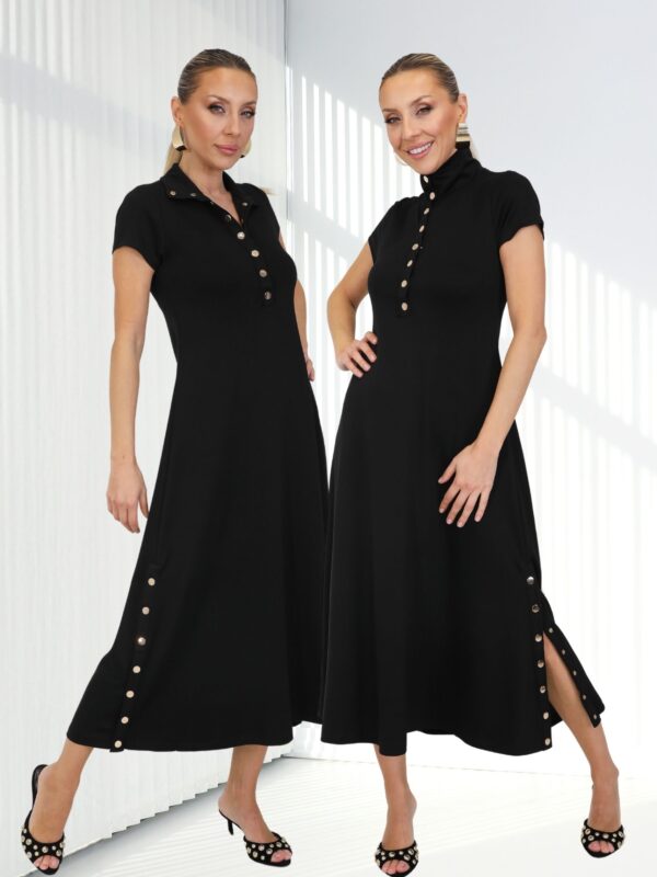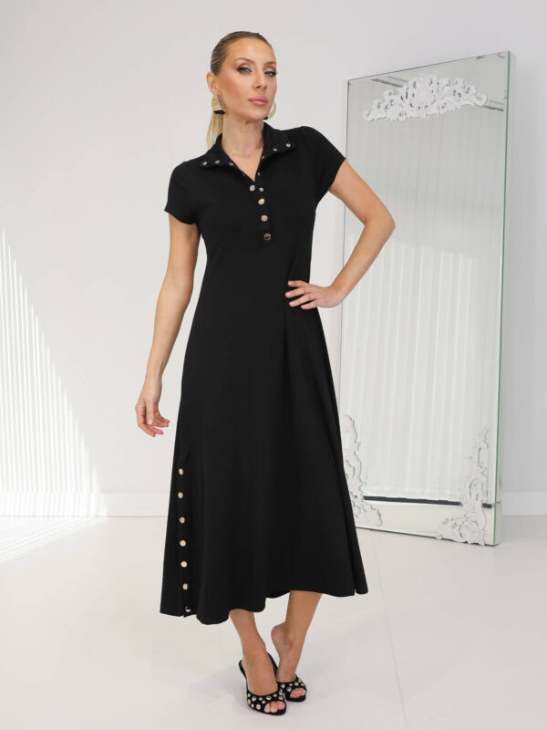 • Siyah Çıtçıt Kısa Kol Alora Elbise