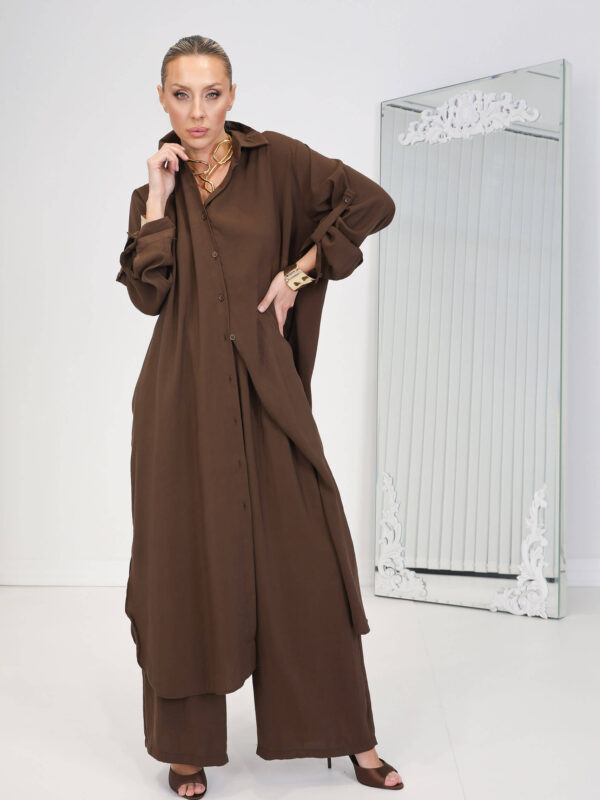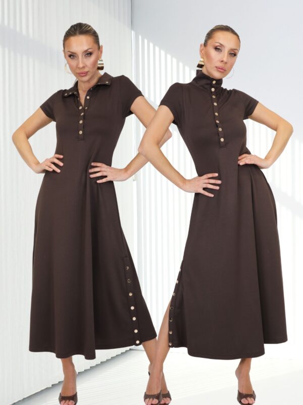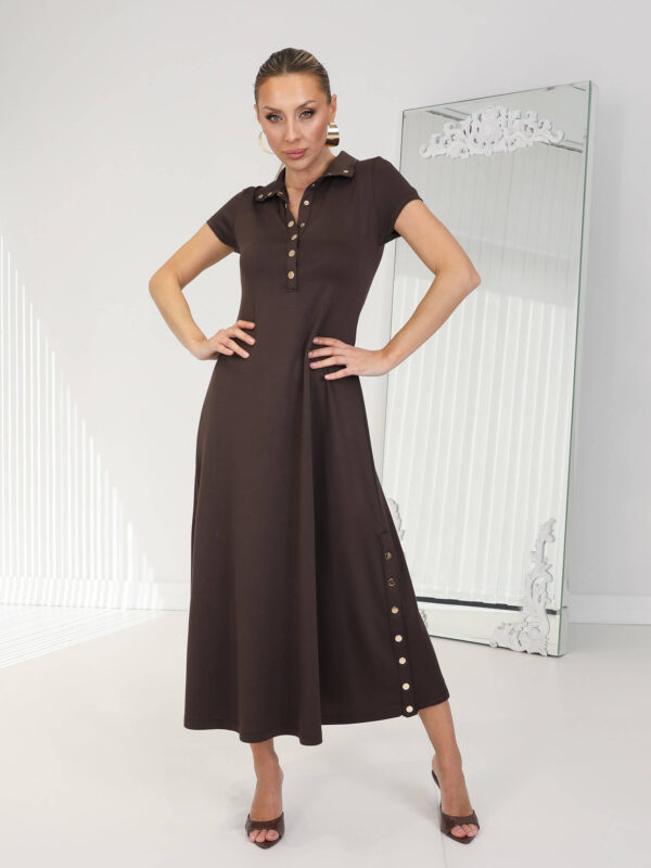 • Kahve Çıtçıt Kısa Kol Alora Elbise