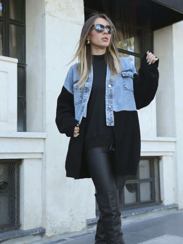 • Leopardesen Siyah Jean Tasarım Hırka
