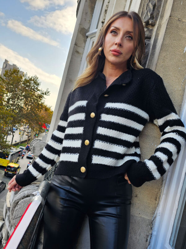 • Siyah Çizgili Dantelli Hırka