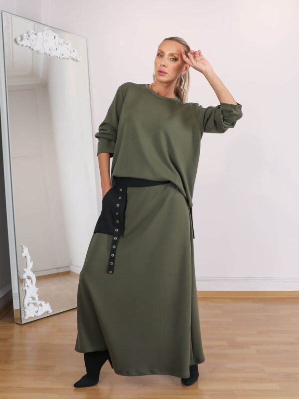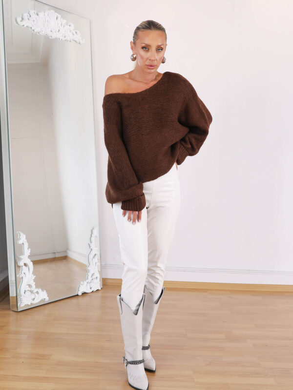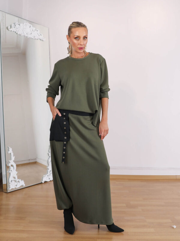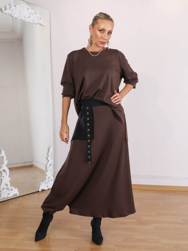 • Kahve V Yaka Çift Yırtmaç Elbise
