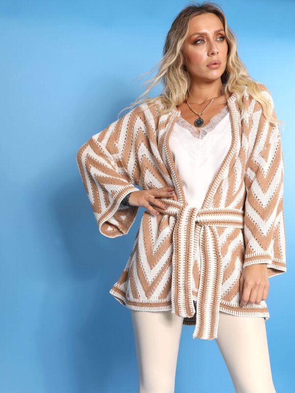 • Taş Vizon Zikzak Örgü Kimono Hırka