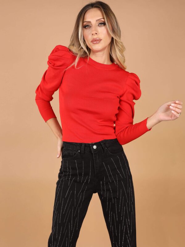 • Kırmızı Camelrengi Taş Düğme Hırka