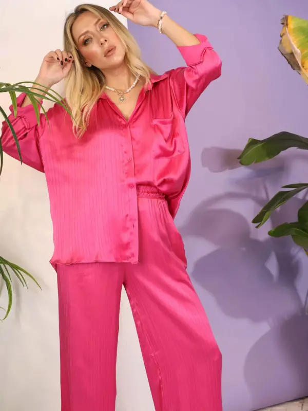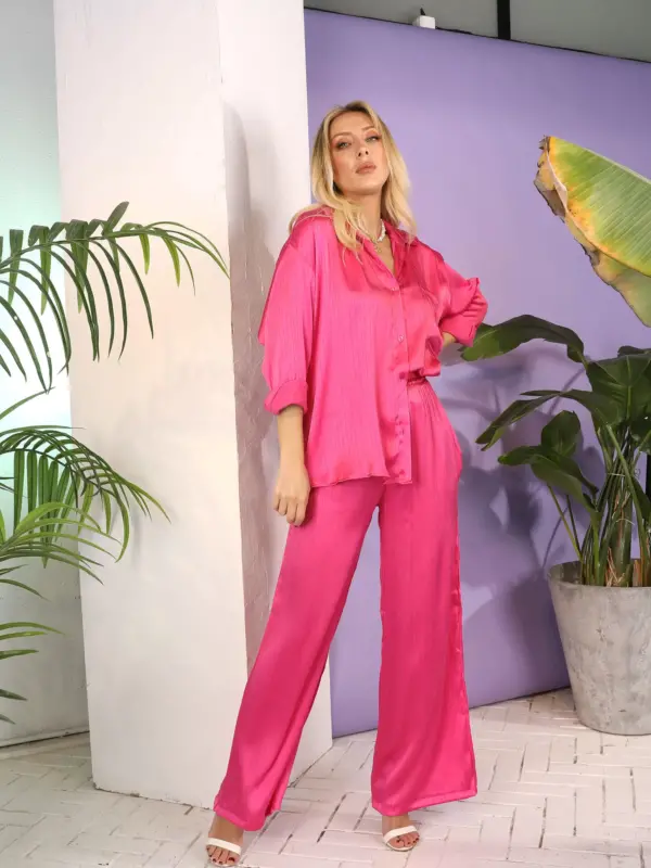 Mercan Mavi Batik Ortanca Pantolon Gömlek Takım