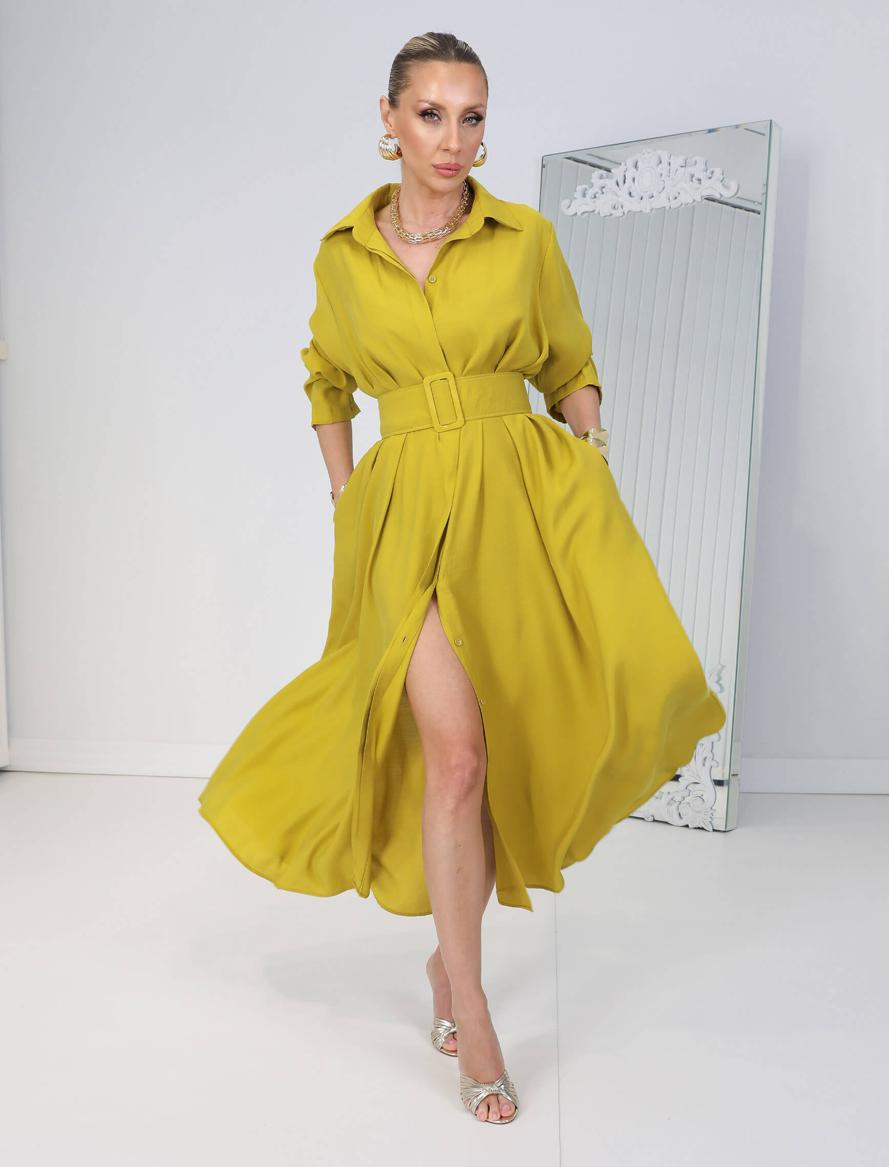1.249,95 TL Bu ürünün birden fazla varyasyonu var. Seçenekler ürün sayfasından seçilebilirYağyeşili Kemerli Rosso Elbise